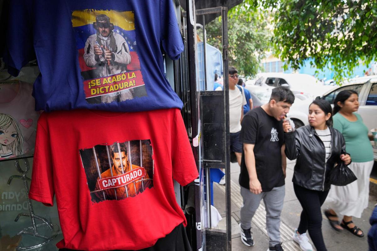 La diseñadora gráfica de 22 años que trabaja en el mercado textil más grande de Lima se puso a imprimir hasta 12 modelos de camisetas con fotografías del líder derrocado Nicolás Maduro, primero hechas con inteligencia artificial y luego reales, y con frases como "El verdugo cayó" o "Game over", que sus clientes le quitaron de las manos desde el mismo día de la operación militar.