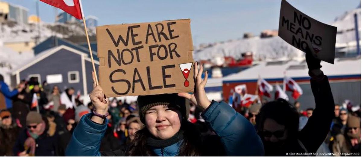 Los manifestantes consideran inaceptable que Groenlandia esté siendo amenazada con una invasión.