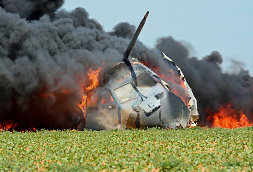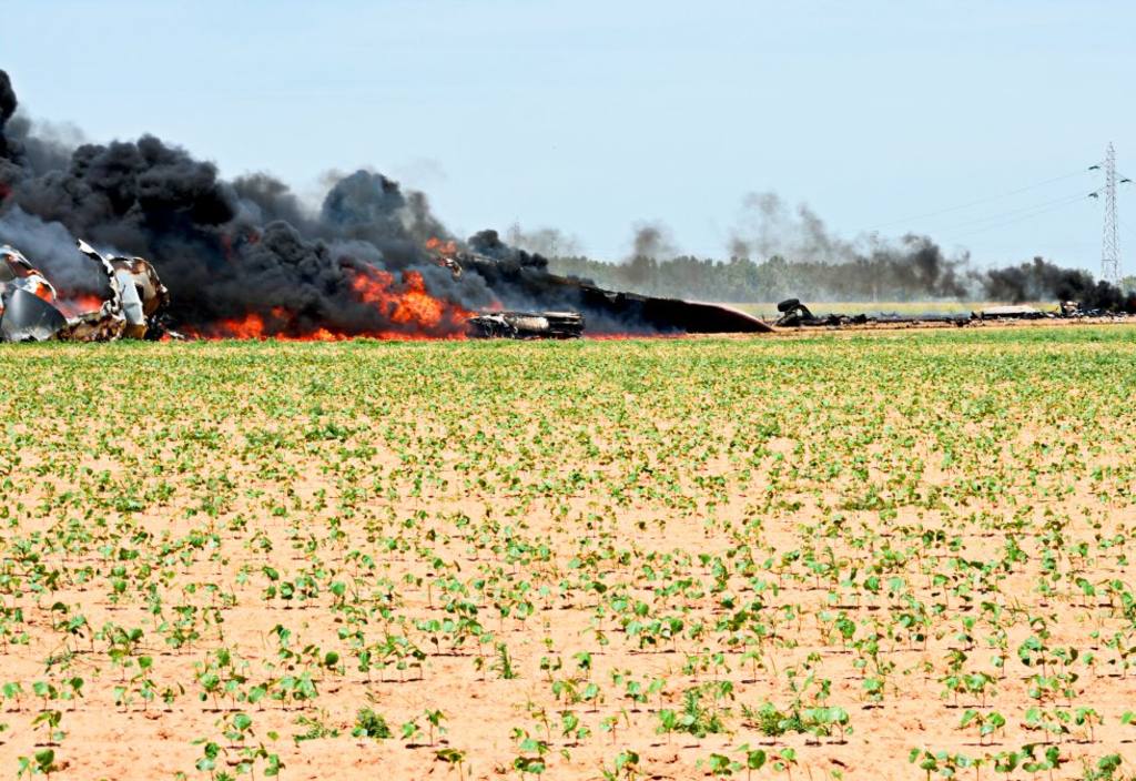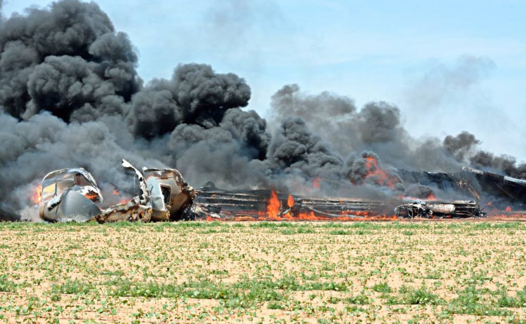 Las fotos reflejan los últimos momentos de vuelo de la aeronave, así como la caída del avión a tierra donde se puede observar las impresionantes explosiones a causa del impacto de la aeronave con el suelo y con cables de tensión.