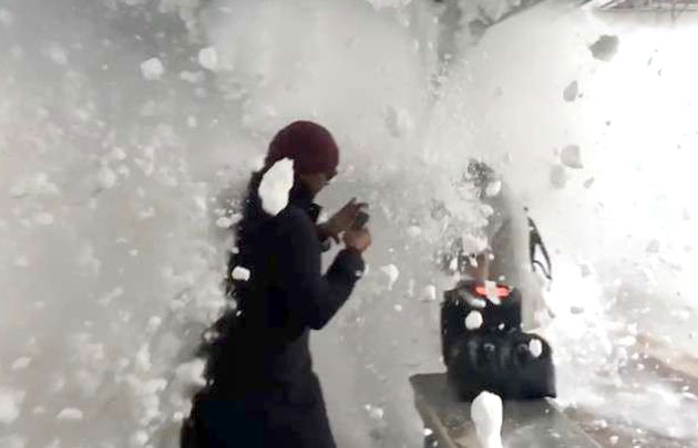 Un tren provoca un "tsunami" de nieve en Nueva York