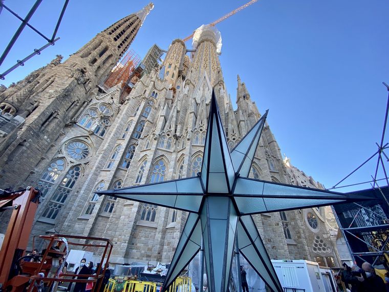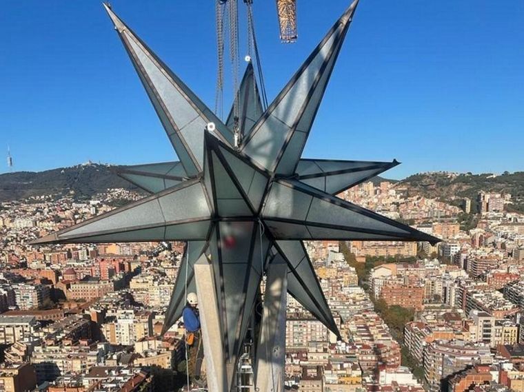 La basílica de la Sagrada Familia de Barcelona, coronó este 29 de noviembre la torre de la Virgen María con una gran pieza en forma de estrella de doce puntas que reflejará los rayos del sol durante el día y se iluminará con focos por la noche, y que alcanza así los 127 metros.