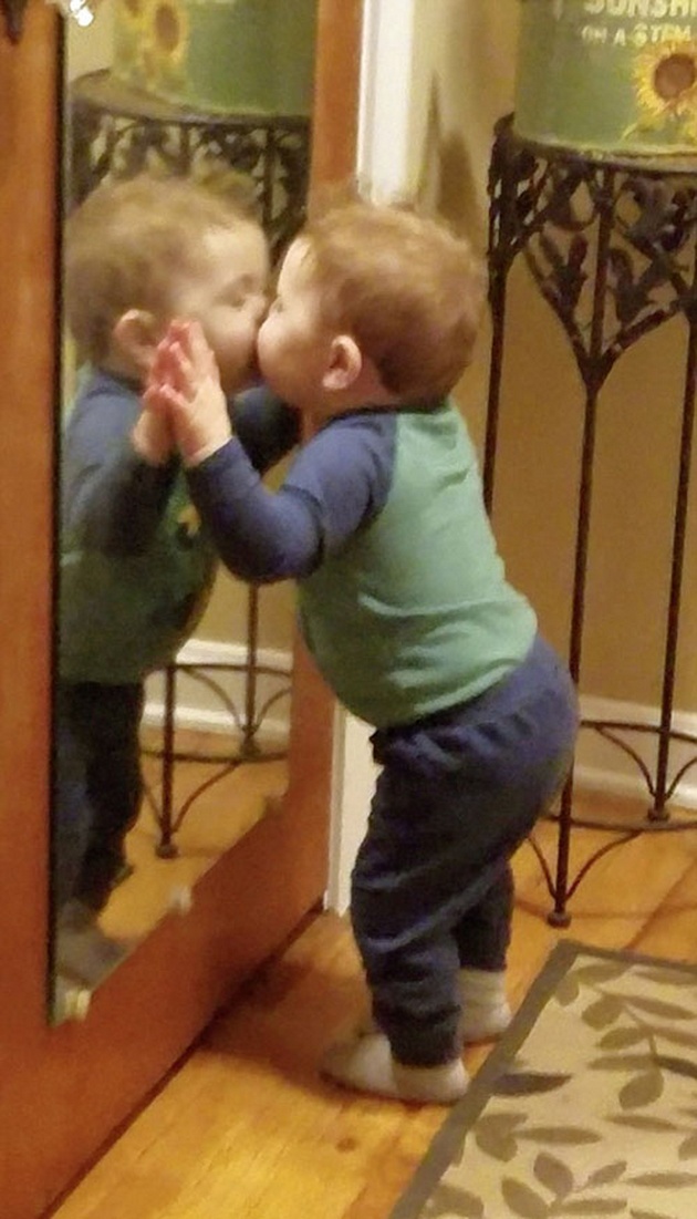 Un bebé de un año de Lakemore, Ohio, en Estados Unidos, se descubrió en un espejo y fue captado en video por su abuela mientras se besaba con el reflejo.