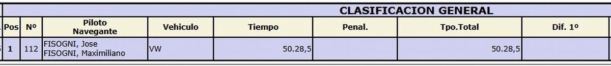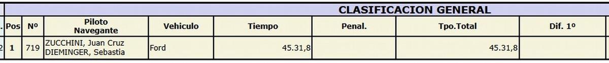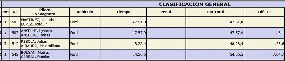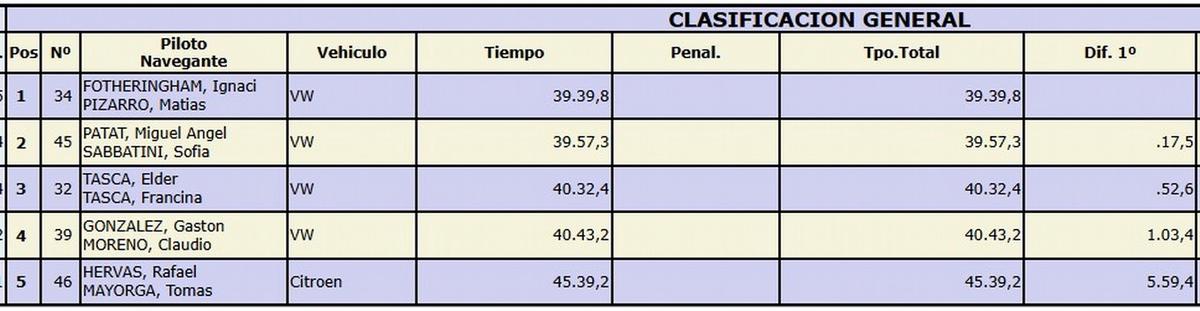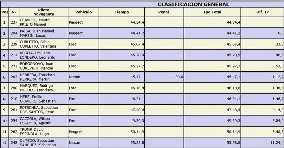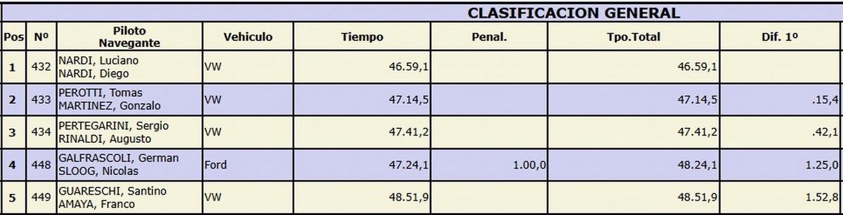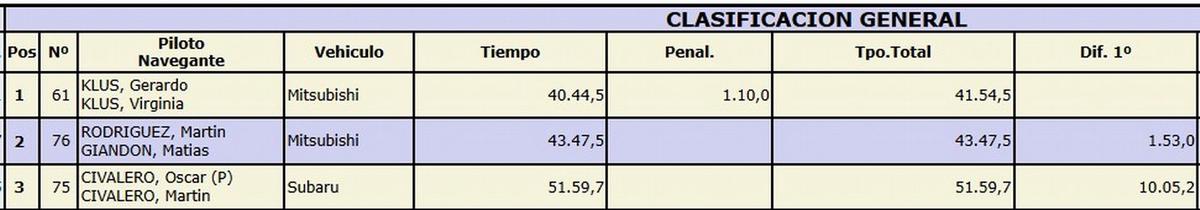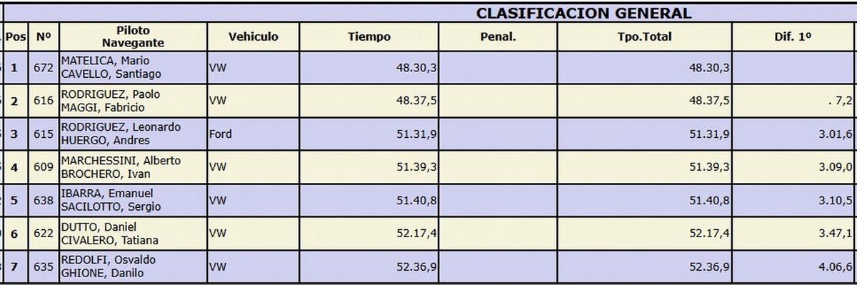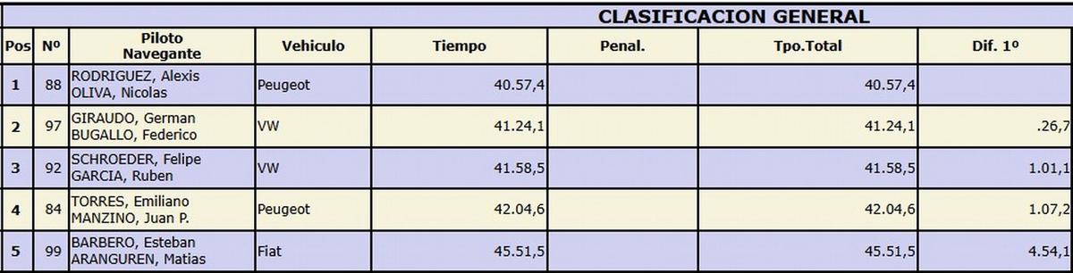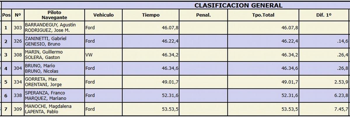 Rally Cordobés: Clasificación por divisiones del Rally Almafuerte-Río Tercero