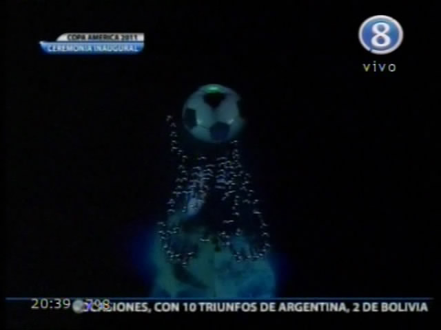 También lo que se mostraba en una semi-esfera de cinco metros de alto por nueve de diámetro colocada justo en el círculo central del césped del estadio platense, que para ese momento ya estaba repleto.