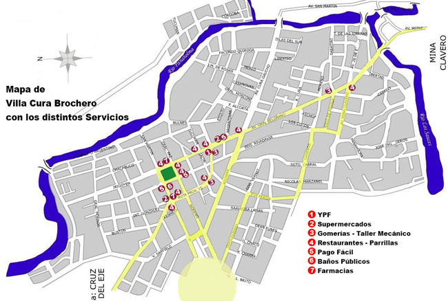Mapa de Villa Cura Brochero con los distintos Servicios