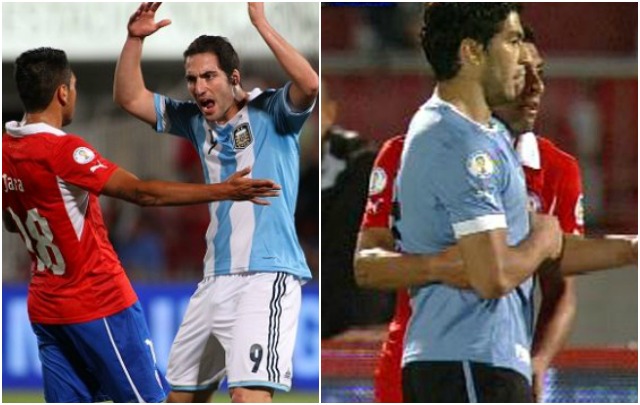 El defensor chileno realizó la misma acción con los delanteros de Argentina y Uruguay. Sin embargo, en estos casos no hubo expulsión como en el caso de Cavani. Entrá y mirá.