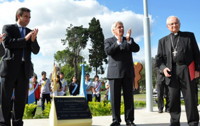 El gobernador José Manuel De la Sota, el arzobispo, Monseñor Carlos Ñañez y el intendente, Ramón Mestre, descubrieron una placa alusiva al nuevo Santo Padre en la plazoleta del Parque Las Tejas.