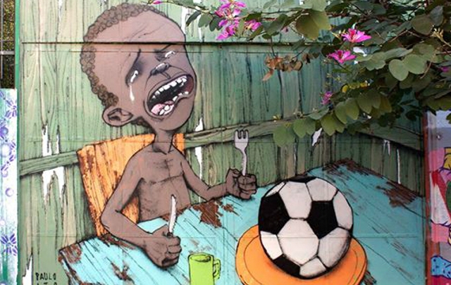 El grafiti callejero se hace eco del inconformismo en murales de elocuentes mensajes. Uno de los casos fue la creación del artista Paulo Ito, con un niño desnutrido con una pelota de fútbol en su plato, que recorrió el mundo.