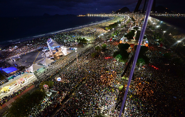 Un millón de personas acompañaron anoche al papa Francisco en la playa de Copacabana, en Río de Janeiro, en el primer encuentro del Sumo Pontífice con los jóvenes de todo el mundo.
