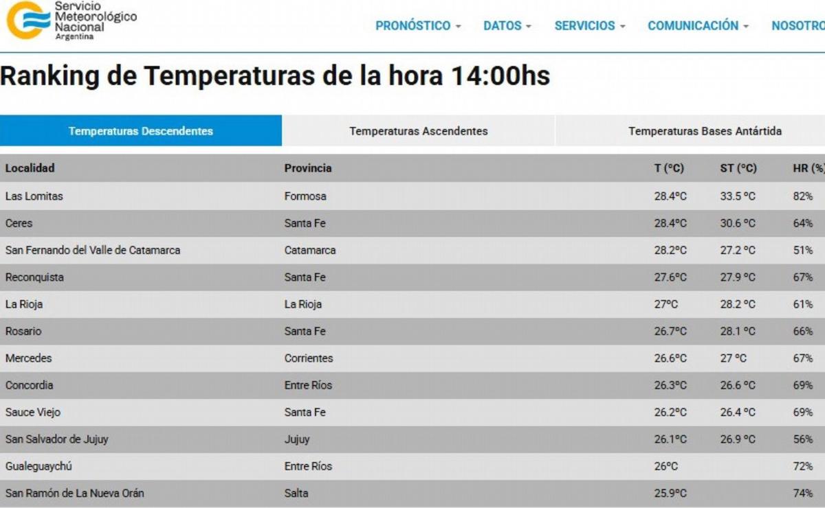 Este martes, Rosario se ubicó entre las ciudades más calurosas del país, con una temperatura de 26,7°C y una sensación térmica de 28,1°C, según el ranking del SMN de las 14 horas.