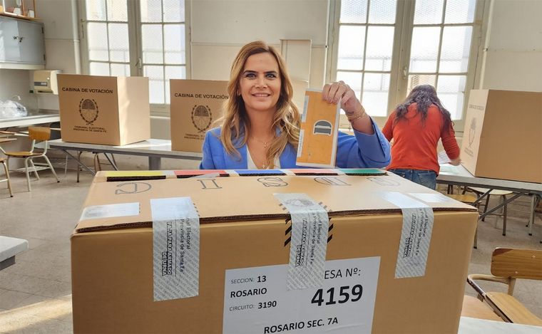 La diputada provincial de Santa Fe busca renovar su banca en los comicios de este domingo. Estuvo acompañada por el conductor de radio y televisión, Baby Etchecopar.