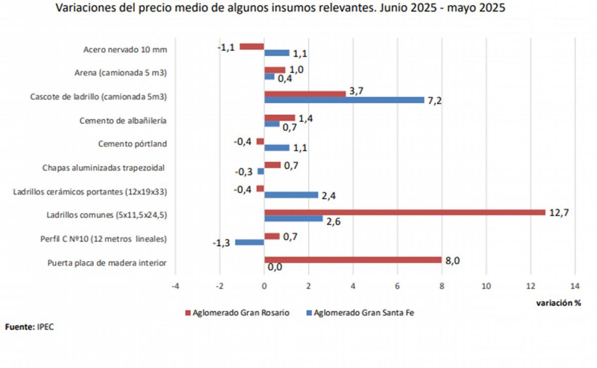 En junio de 2025, el costo de la construcción en el aglomerado Gran Rosario aumentó un 2,0% con respecto al mes anterior.