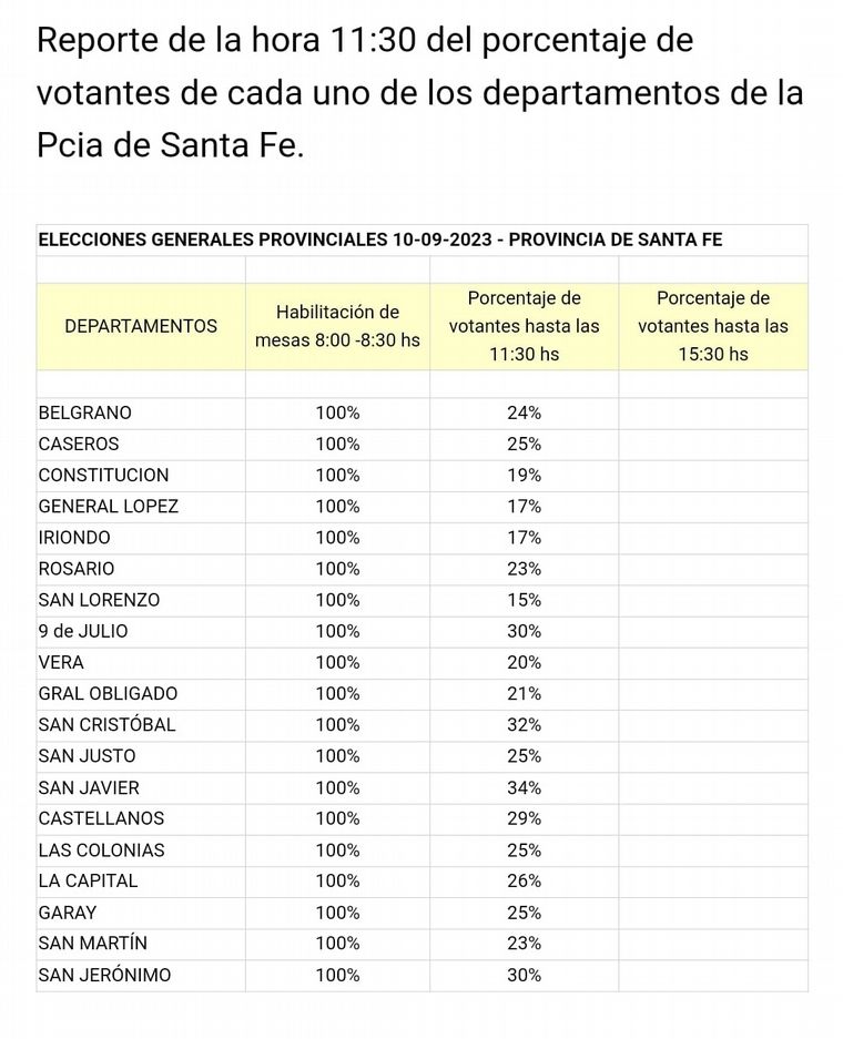 12.00. Se conocen porcentajes de votación por departamentos en Santa Fe