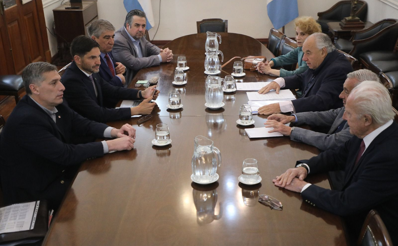 El gobernador de Santa Fe, Maximiliano Pullaro, recibió este domingo a las 7.30 de la mañana a jueces de la Corte Suprema de Justicia santafesina. La reunión se desarrolló en el Salón Protocolar de la Casa de Gobierno en la ciudad capital, y participaron además los ministros de Gobierno e Innovación Pública, Fabián Bastia; de Justicia y Seguridad, Pablo Cococcioni, y de Economía, Pablo Olivares. En tanto, por la Corte, asistieron su presidente, Rafael Gutiérrez y los ministros Roberto Falistocco, Eduardo Spuler y María Angélica Gastaldi.
