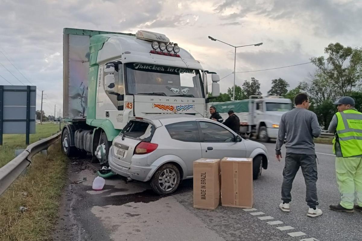 Fuerte choque entre auto y camión generó demoras en autopista a Buenos Aires