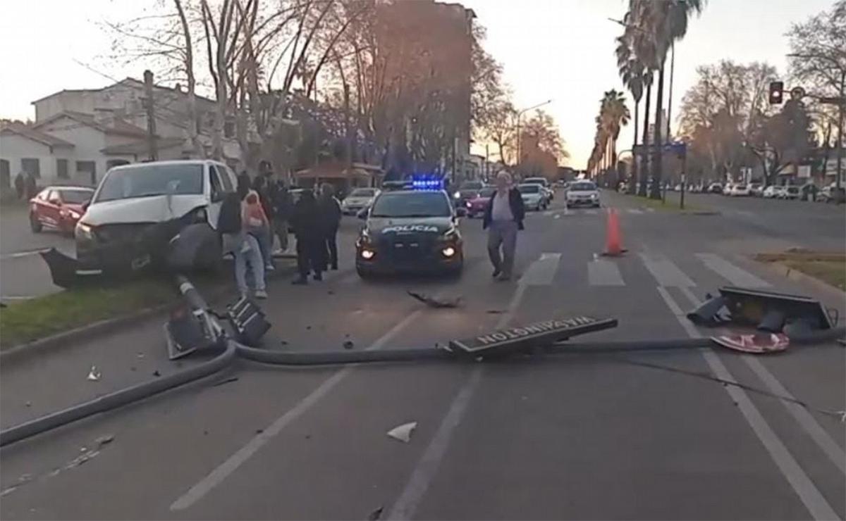 Impactante choque de un utilitario contra un semáforo en bulevar Rondeau