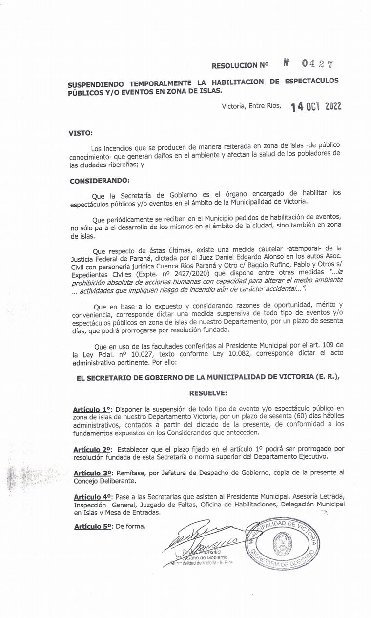 La polémica de las fiestas en las islas entrerrianas sumó un nuevo capítulo, que parece definitivo: la Municipalidad de Victoria suspendió temporalmente la realización de festejos los paradores isleños. Unas horas antes un organizador dijo que seguiría adelante con las actividades festivas.