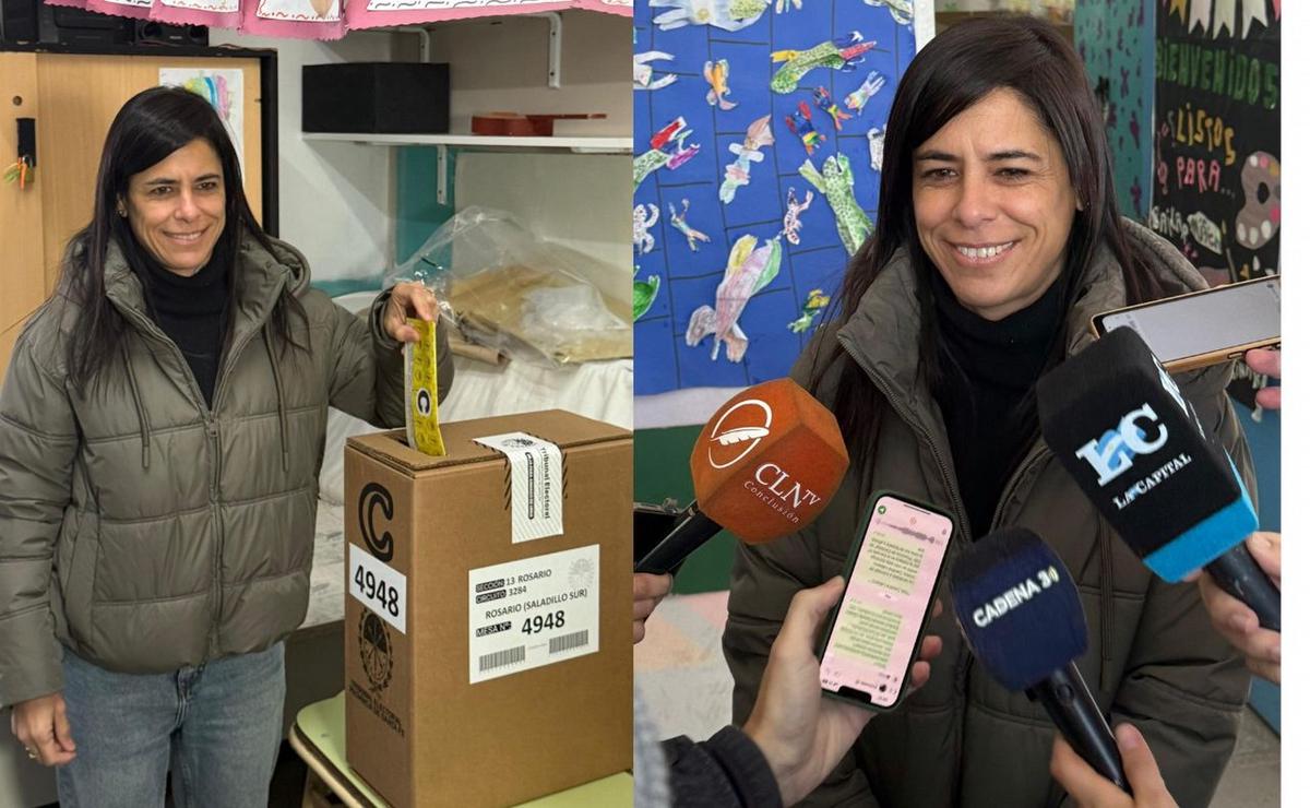 En la escuela primaria 526, ubicada en Sánchez de Bustamante 83B, en la zona sur de Rosario, Carolina Labayrú, candidata del oficialismo –Unidos- a concejal, ejerció su derecho al voto en la jornada electoral y habló con la prensa.