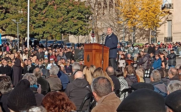 En su discurso resaltó el legado del héroe que “hizo de la bandera un símbolo de unión para el país, poniendo por delante los intereses colectivos” y resaltó su “utopía educativa y su visión que reivindicaba la riqueza por el trabajo paciente de la tierra, la protección de comercio y la industria con agregado de valor aplicando conocimientos”, una “actitud revolucionaria desde Rosario”.
