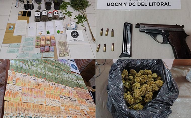 En los operativos de este sábado (en la ciudad fueron en la zona de Vía Honda, del barrio Triángulo), se secuestró gran cantidad de dinero (cerca de 2 millones de pesos, aún están contando), marihuana y teléfonos celulares.