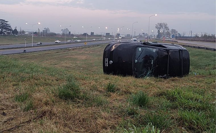 Padre e hija se salvaron tras volcar su auto en la Circunvalación de Rosario
