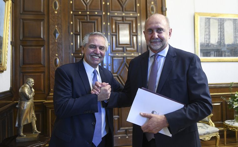 El presidente Alberto Fernández mantuvo este lunes en Casa Rosada una reunión con el gobernador de Santa Fe, Omar Perotti, con quien dialogó sobre el impacto de la sequía en esa provincia y el proyecto de la hidrovía Paraná-Paraguay, además de las políticas del Gobierno Nacional en el distrito, según informó Presidencia.