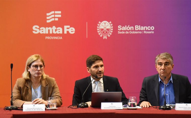 Maximiliano Pullaro estuvo acompañado por integrantes de su Gabinete, como los ministros Fabián Bastías (Gobierno), Gustavo Puccini (Desarrollo Productivo), Pablo Olivares (Economía), Lisandro Enrico (Obras Públicas), entre otros.