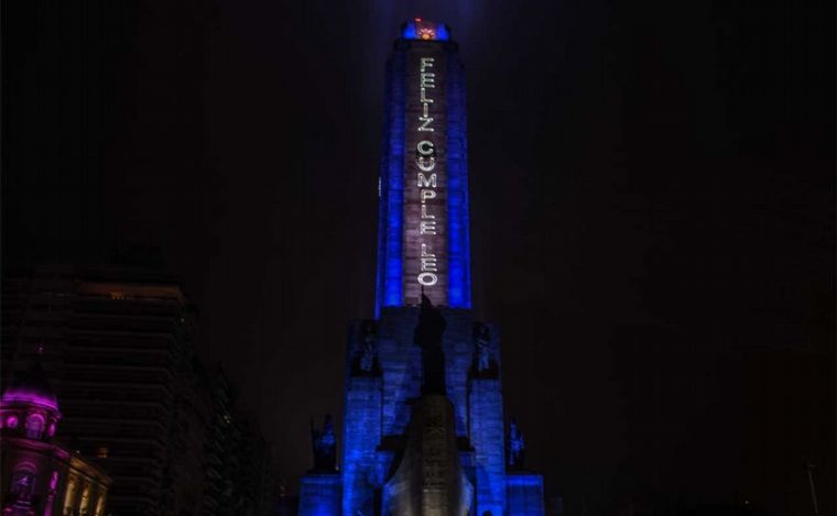 Cuando el reloj marcó las 0 del sábado, a la iluminación ornamental que el Monumento ya tiene hace algunos meses se le sumó una serie de mensajes por parte de la Municipalidad de Rosario para saludar al reciente campeón del mundo en un nuevo aniversario de su natalicio.