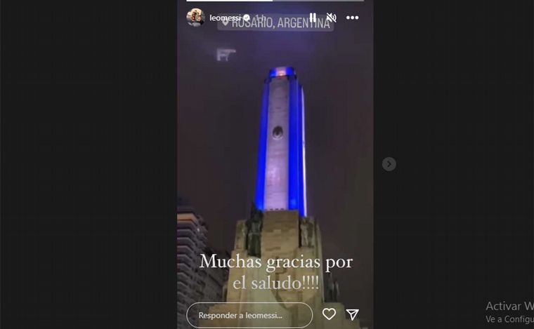 En los primeros instantes de esta jornada especial para la ciudad del fútbol que lo vio nacer, tuvo su un saludo en el principal emblema rosarino. El Monumento Nacional a la Bandera volvió a ser el lugar elegido para proyectar un mensaje para el astro del fútbol.