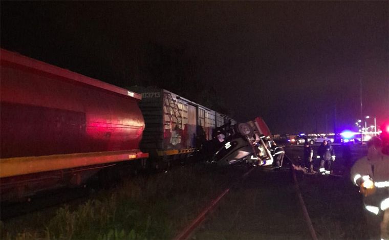 El impacto se produjo a pocos metros del acceso norte a la autopista Rosario-Santa Fe. Las primeras versiones indican que el rodado fue embestido fuertemente por la formación ferroviaria.