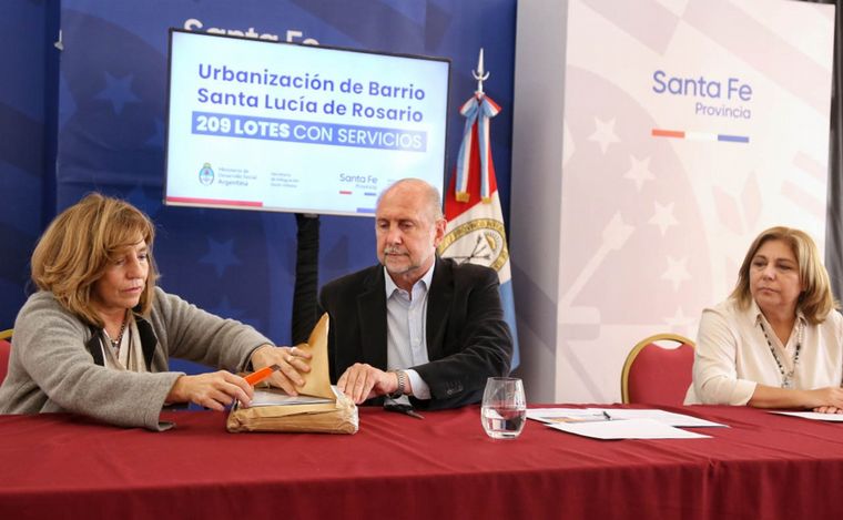El gobernador de la provincia, Omar Perotti, encabezó este miércoles junto a las ministras de Infraestructura, Servicios Públicos y Hábitat, Silvina Frana; y de Salud, Sonia Martorano, el acto de apertura de sobres de la licitación de la obra de urbanización del barrio Santa Lucía, de la ciudad de Rosario.