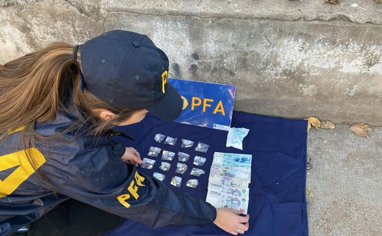 En ese marco, el personal policial vestido con ropa de civil se aproximó al sospechoso y procedió a reducirlo. Ante la presencia de testigos, determinaron que en el bolsillo delantero del chaleco inflable negro que vestía, poseía una bolsa de nylon con varias bolsitas más con una sustancia blanca polvorienta, que realizada el narco-test, arrojo positivo para cocaína.