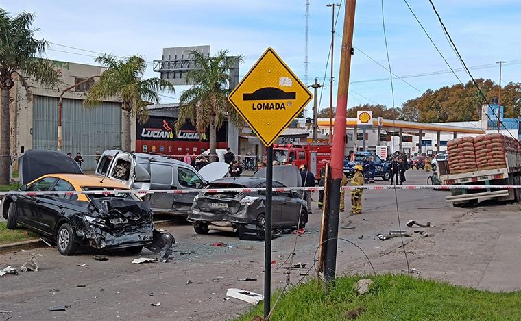 Detallaron que en ese lugar, un camión con acoplado cargado con bolsas de cemento "se habría quedado sin frenos", tras lo cual, provocó un choque en cadena al colisionar la fila de vehículos que aguardaban en el semáforo.