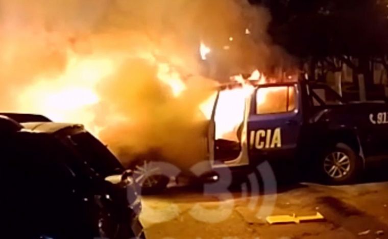 Video impactante: el momento en el que incendian un patrullero en Rosario