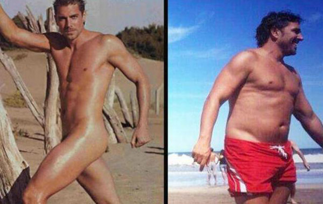 Alfano antes, con físico escultural y ahora, un poco más rellenito.