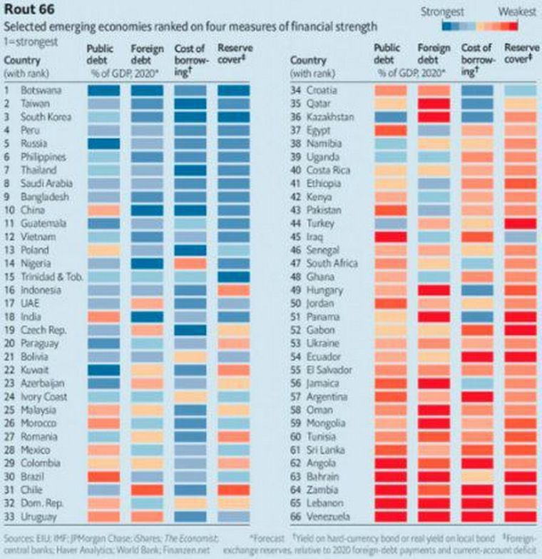 A su vez, Angola, Túnez, Mongolia y Omán fueron otras de las naciones seleccionadas por el medio británico con un elevado riesgo financiero.