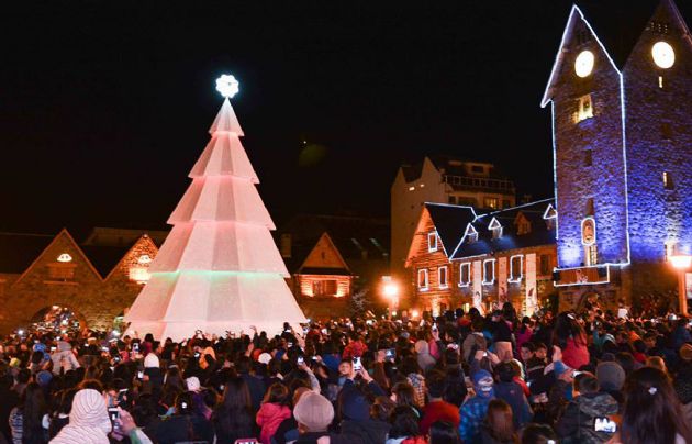Una importante cantidad de vecinos y turistas asistieron anoche al ya tradicional encendido del árbol gigante de Navidad del Centro Cívico de Bariloche.
