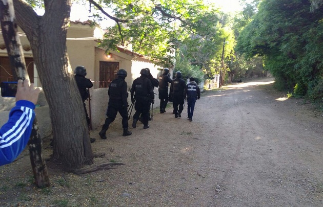 El magistrado indicó que se secuestraron "elementos policiales entre ellos un chaleco, escudos y gorras policiales, armas de fuego calibre 9 milímetros, una carabina y una máscara que eran usadas en los hechos para cubrir la identidad de los autores".
