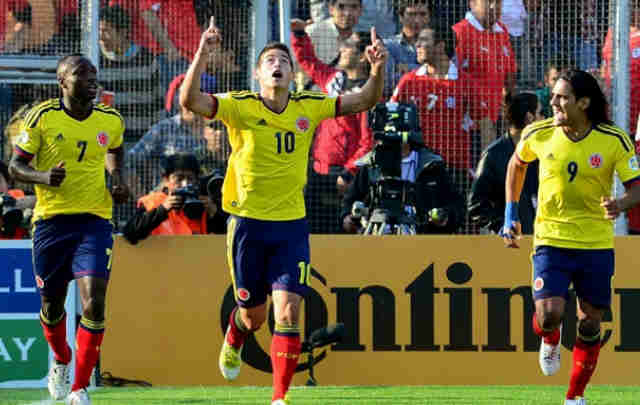 Jugaron en Santiago. Los goles "cafeteros" fueron marcados por James Rodríguez, Radamel Falcao y Teófilo Gutiérrez. Matías Fernández descontó para el local. El equipo de Pekerman comparte el segundo puesto con Ecuador, a un punto de Argentina.