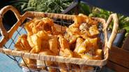 4- Estirar y cortar en cuadraditos para hacer los pastelitos. Armar cada uno a gusto y freir con aceite o grasa bien caliente.