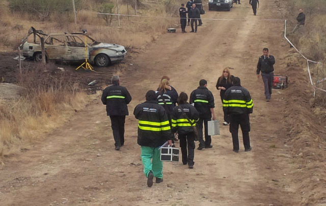 Pedro Roque Martínez, de 43 años, quien se desempeñaba como mecánico, brindando auxilio en la ruta, fue hallado sin vida, con dos balazos, en el interior de su automóvil Peugeot 405 break, incendiado.