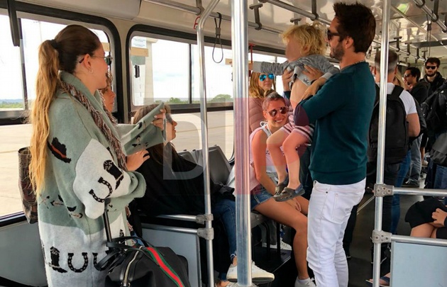 Se cruzaron en el aeropuerto de Laguna del Sauce. Eugenia Suárez está embarazada de seis meses del ex marido de la modelo. Uno de los hijos del actor chileno no se quería separar de él.