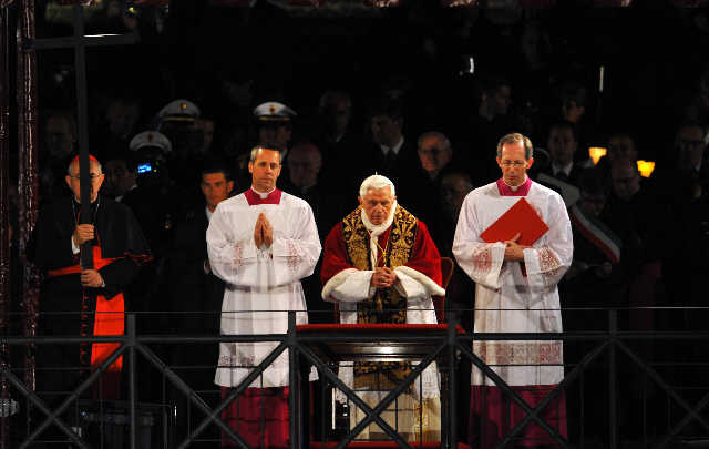 El papa Benedicto XVI presidió el Vía Crucis en el Coliseo de Roma ante miles de fieles