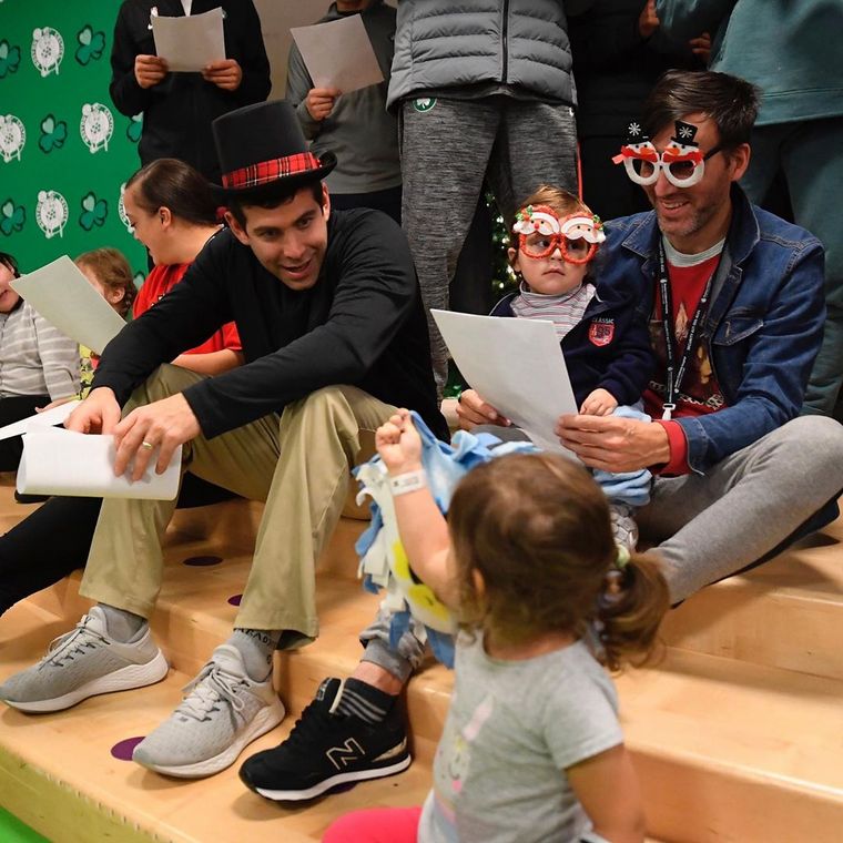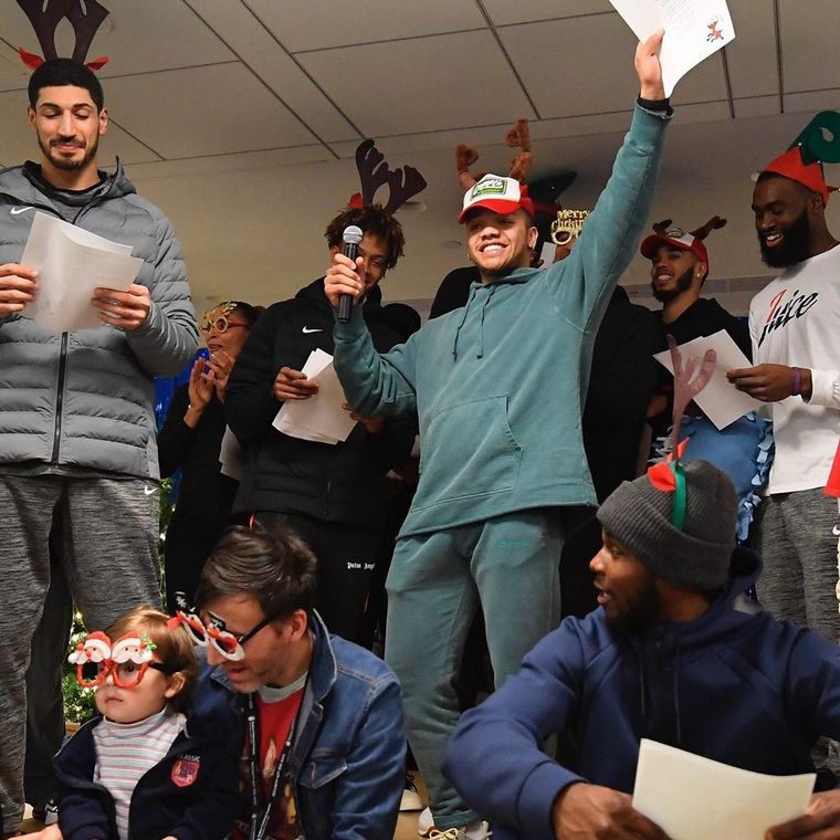 Los basquetbolistas de la franquicia más ganadora de la NBA visitaron el Boston Children Hospital, donde Lauti se encuentra recuperándose, para cantar villancicos, entregar regalos y compartir juegos con los niños.