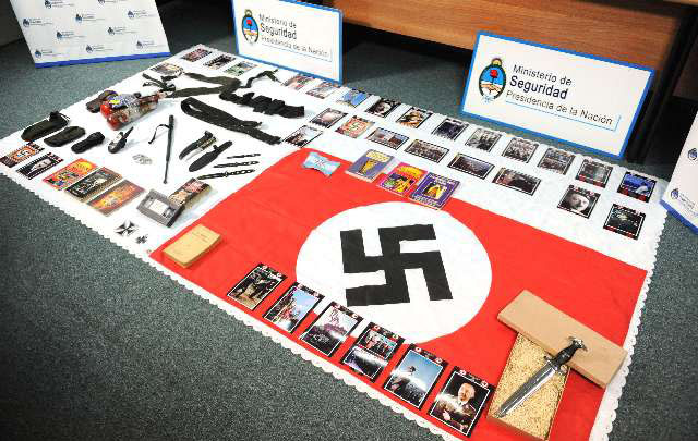 material bibliográfico, armas blancas con inscripciones nazi, manoplas y garrotes que sirven para pensar que pensaban llevar algún tipo de acción a las calles", dijo Robles.