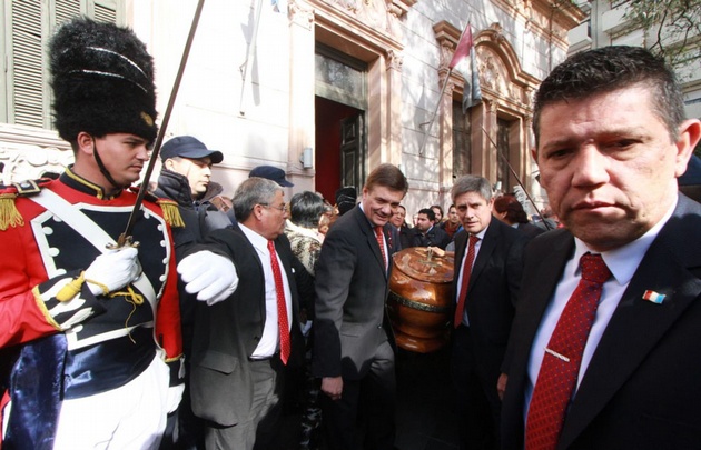 FOTO: Los restos de Angeloz llegan al Centro Cívico.
