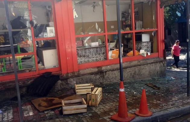 La fuerte explosión voló los vidrios a una verdulería, parte del tejado y afecto la vidriera de un negocio de la vereda del frente.