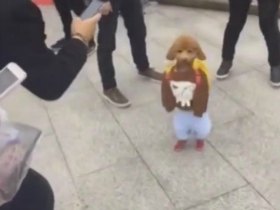 Un pequeño perro vestido como niño que camina sobre dos patas por las calles de China causa sensación en Internet.