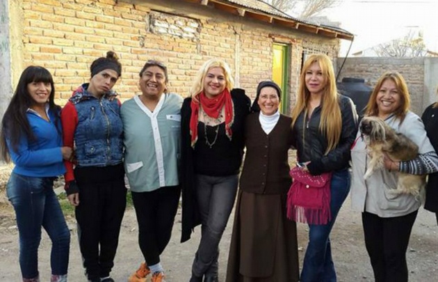 Todo comenzó cuando la carmelita se contactó con un grupo de travestis de Neuquén que querían dejar la calle; las ayudó a conseguir y reacondicionar una casa donde armaron un taller de costura.