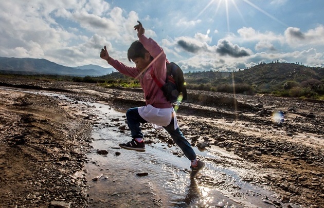 Ulises, de siete años, camina todos los días seis kilómetros atravesando senderos de tierras, piedras y ríos para llegar a estudiar a su colegio en Las Cortaderas, Salta.